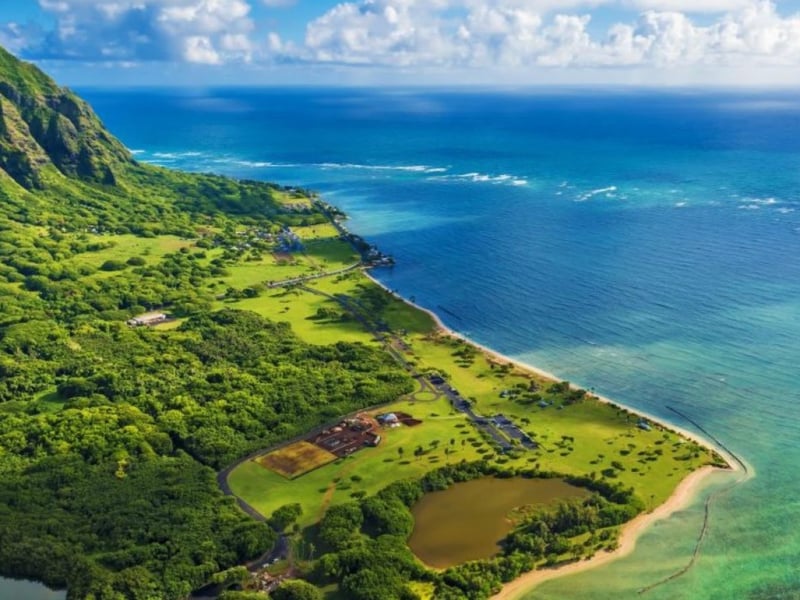 Fly for 50 minutes over Oahu with doors off for clear views of iconic sites