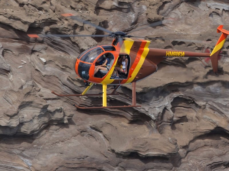 Minimum age to fly is 10; passengers next to the open door must be 12+. Not wheelchair accessible; you must step up three steps to board and secure only one strapped phone or camera per person (no hats or bags). First-class seats are sold in pairs with a combined 340 lb limit; passengers over 300 lb must purchase a comfort seat. When booking, please include the weight of each passenger in the notes section.