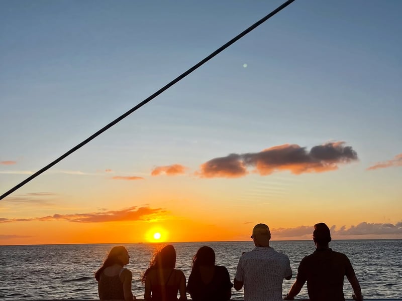 Watch the Hawaiian sunset from a spacious 53-foot catamaran with complimentary cocktails and light appetizers.