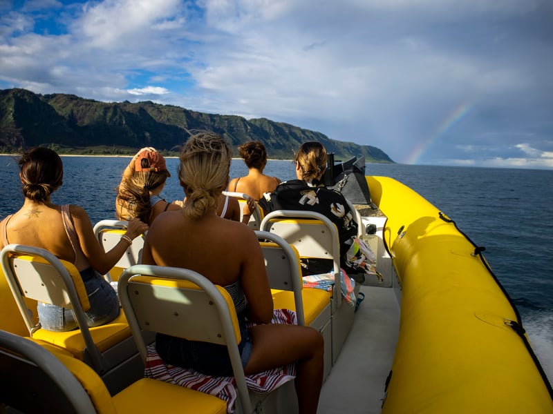 Join a fast, smooth boat on Oahu’s North Shore to explore remote waters and look for diverse marine life. Cruise with an experienced crew as you watch for dolphins, sharks, turtles, rays, and seasonal humpback whales.