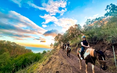 Catch spectacular golden-hour light as you ride gentle polo ponies along the southern slopes of the Wai‘anae Mountains. Enjoy expansive coastal views on a guided walk-only trail ride suitable for beginners and experienced riders.