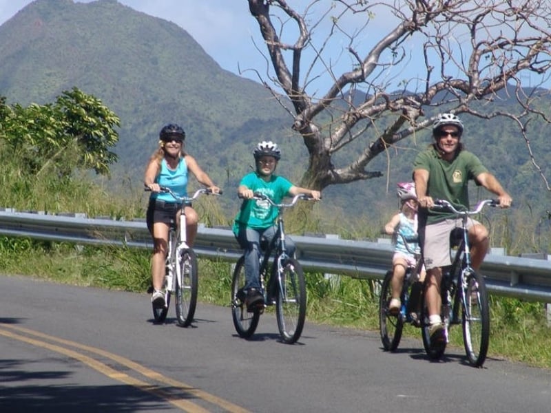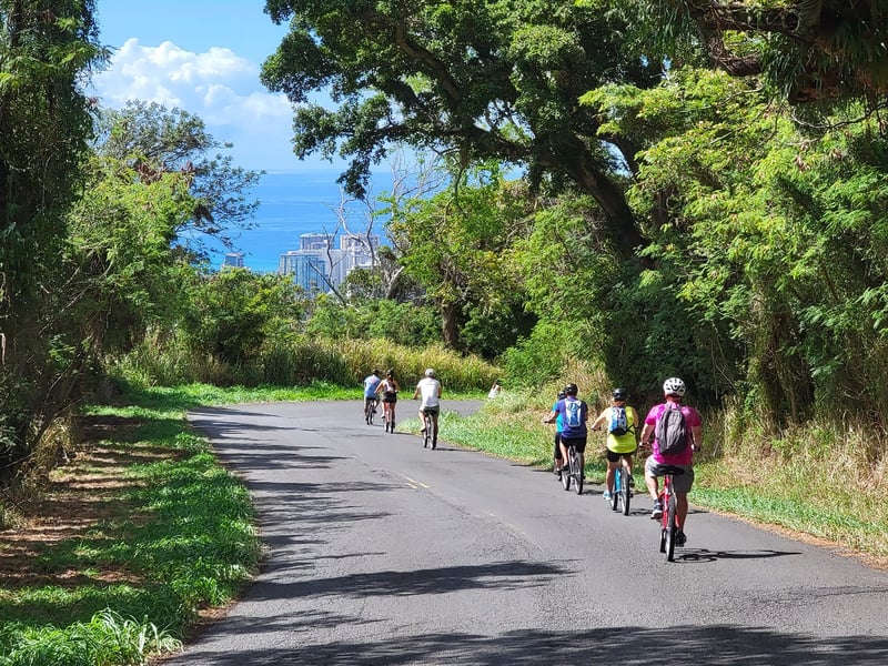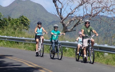 Coast downhill on a paved 5-mile route through Oahu's lush Puu Ohia rainforest, taking in panoramic views, native wildlife, and island culture. This easy ride is great for families.