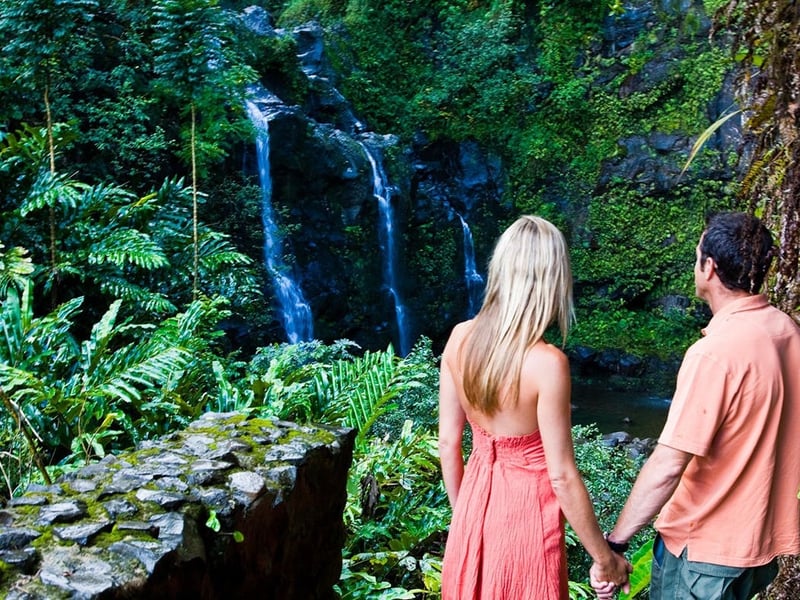 Fly from Oahu for a guided Road to Hana day with air, transport, and lunch included