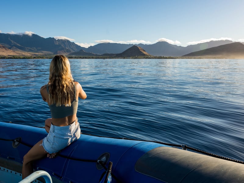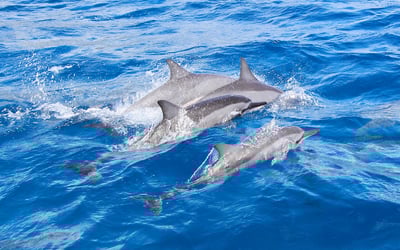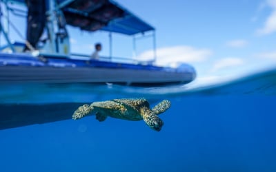 Head offshore from Waianae Harbor on a fast speedboat for a 3-hour adventure. Swim with wild dolphins, watch spinner dolphins, and snorkel a reef with turtles and tropical fish.
