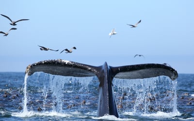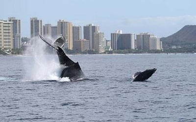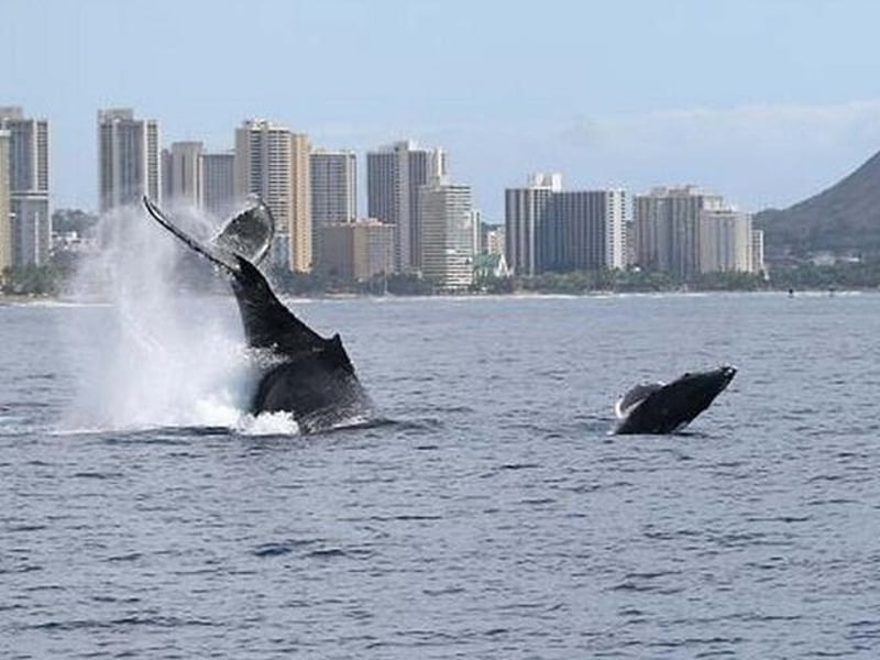 Cruise Oahu waters to see humpback whales with expert guides during peak December–April season.