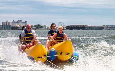 Feel the rush as you skim across Ocean City’s waters on a high-speed banana boat. Depart from the beach behind the Aloft Hotel and enjoy a 20-minute roller-coaster ride towed by a skilled crew.