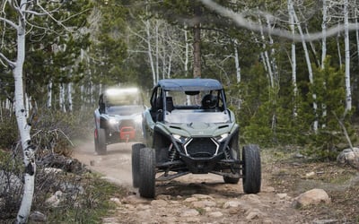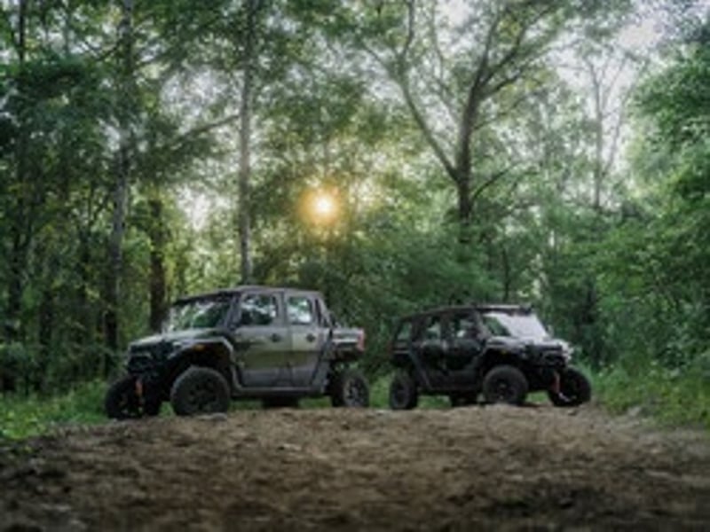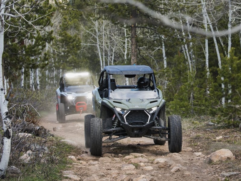 Drive Polaris vehicles directly onto on-site trails with helmets, goggles, and year-round comfort