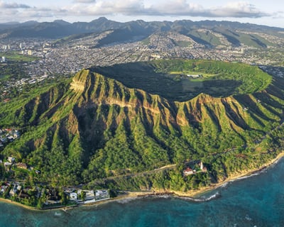 The first stop is the Amelia Earhart Lookout on the eastern side of Diamond Head. This elevated viewpoint offers panoramic views of Oahu's southeastern coastline, with Hanauma Bay visible in the distance and, on clear days, sightlines reaching as far as Maui. Your guide shares the story of Amelia Earhart's first solo flight from Hawaii to North America, which bystanders watched from this very spot.