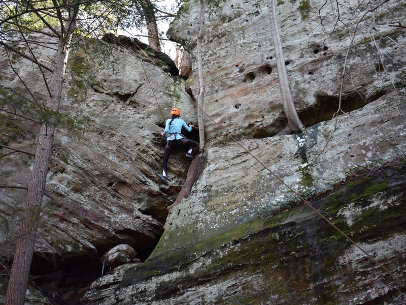 Climb Ohio's natural sandstone cliffs with guided top-rope routes tailored to your ability. Make multiple attempts across varied lines during your session.