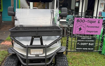 Climb aboard a 5-passenger ghost cart for a night ride through Old Town Spring's most haunted corners. Hear whispers, legends, and chilling tales as you glide through the dark.