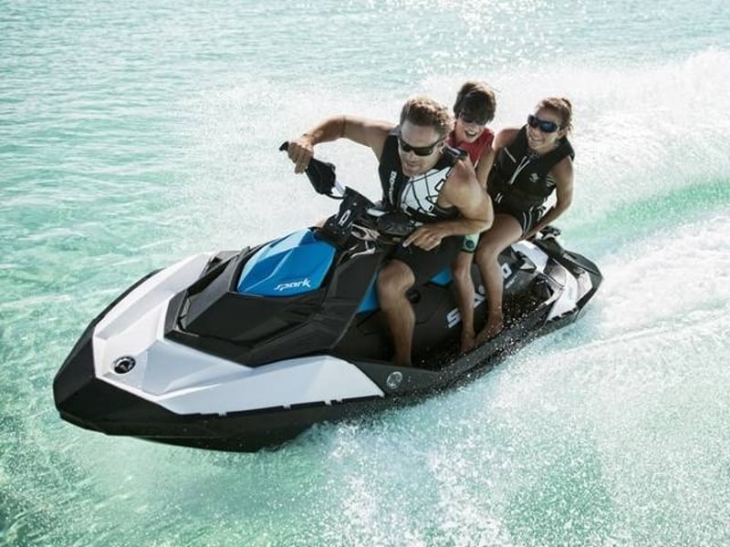 Drivers must be 16 with a valid ID to drive alone. Any age can ride or drive as long as an adult 18+ is onboard. Each jet ski holds up to 3 people with a 400 lb combined limit.