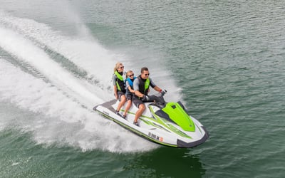Rent a jet ski for one hour and enjoy time on the water. Each jet ski holds up to 3 people with a combined max of 400 lbs.