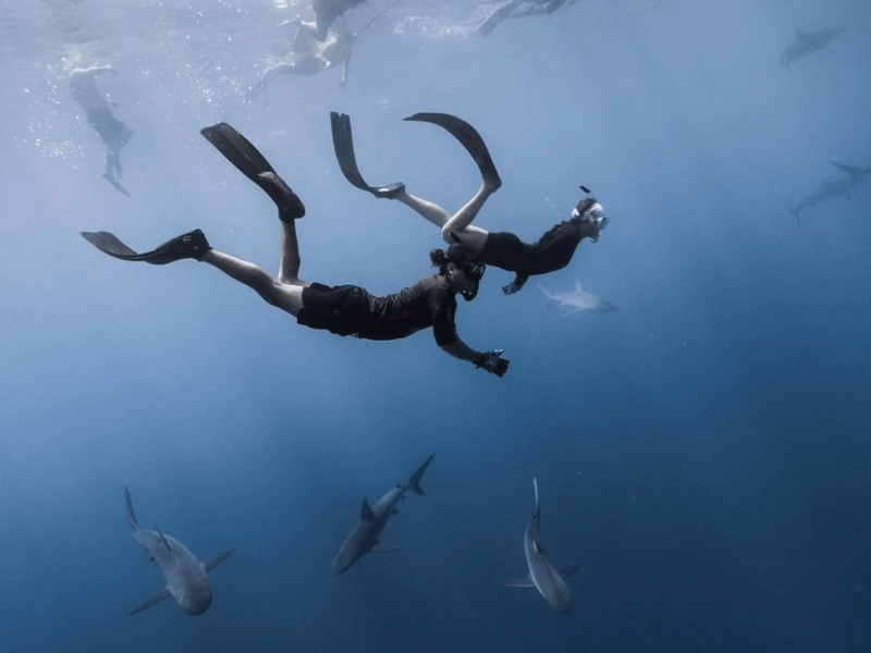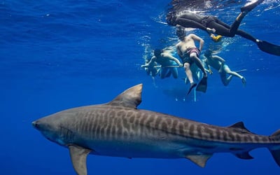 Snorkel in Hawaii's deep blue pelagic waters and encounter sharks and other marine life with a professional crew. Enjoy a scenic boat ride, a thorough safety briefing, and opportunities to capture memorable photos and video.