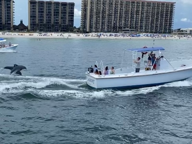 Cruise Orange Beach's waters aboard a spacious open-air boat and watch dolphins in their natural habitat. Enjoy daily departures and sunset options as the crew shares local insights.