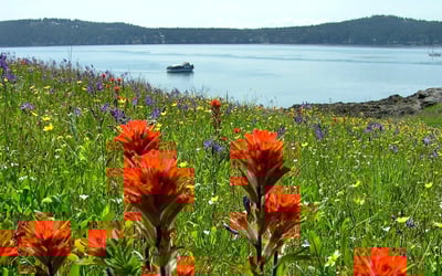 Paddle to Yellow Island in small groups and see seasonal wildflowers on a guided kayak tour