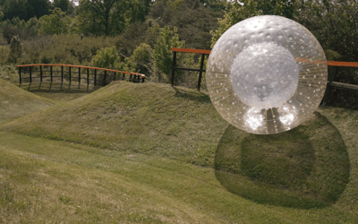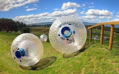 Ride inside a giant inflatable orb down one of three custom tracks at Outdoor Gravity Park. Expect to get soaked as you speed, zigzag, or spin your way downhill.