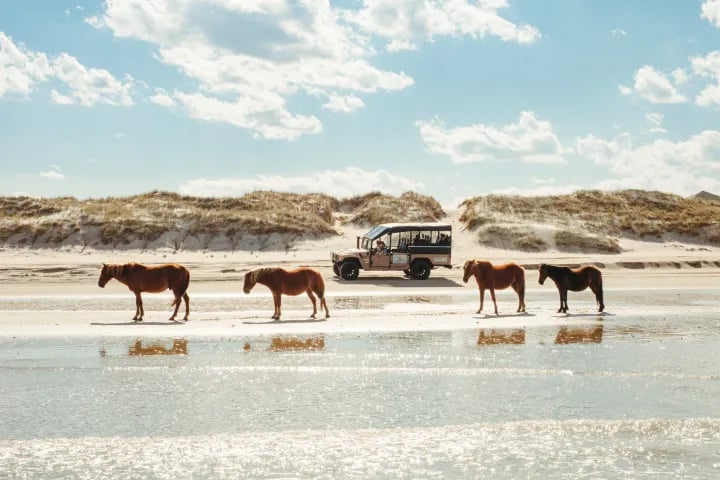 Ride a customized open-air Hummer H1 through three distinct ecosystems to search for local wildlife and Outer Banks wild Spanish mustangs. Enjoy stadium seating, 360-degree views, and a comfortable, safety-focused ride.