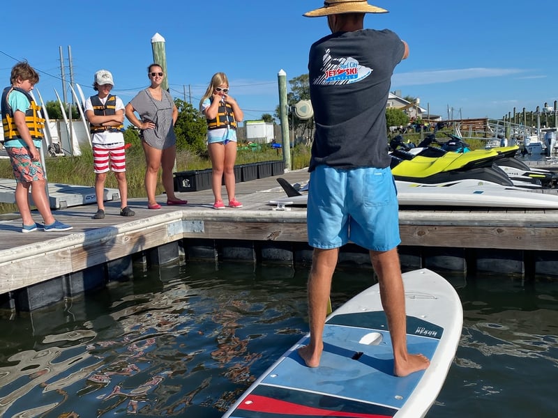 Footwear with ankle straps is highly recommended due to shallow water and oyster shells. Rentals are available 7 days a week, weather permitting.