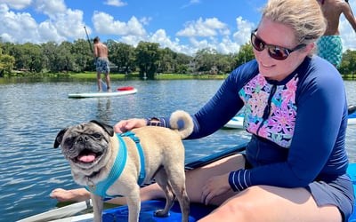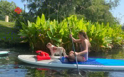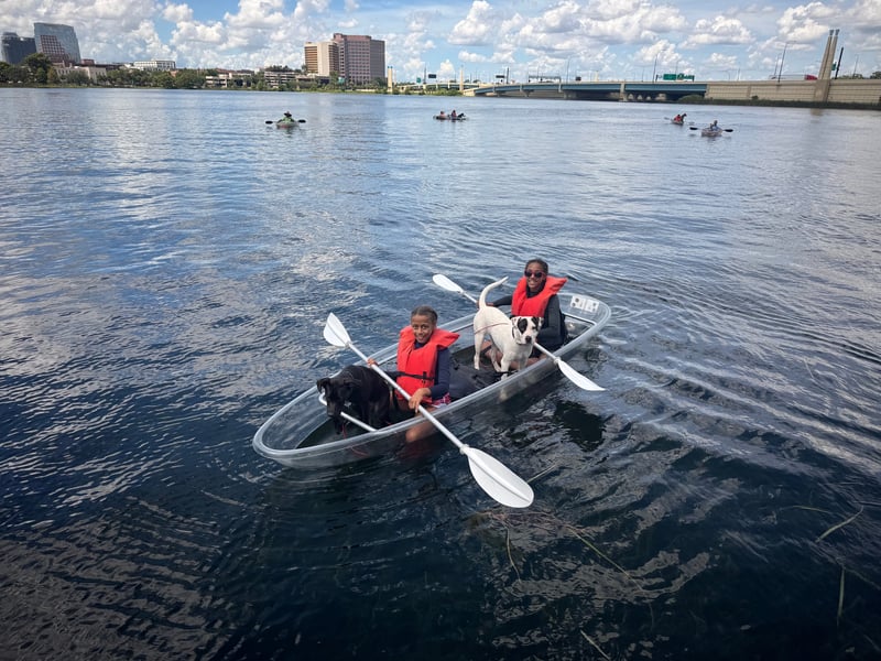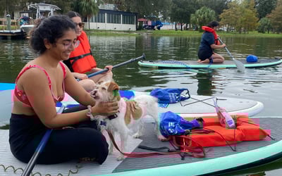 Learn paddleboarding or clear kayaking alongside your dog on a calm, gator-free Orlando lake.