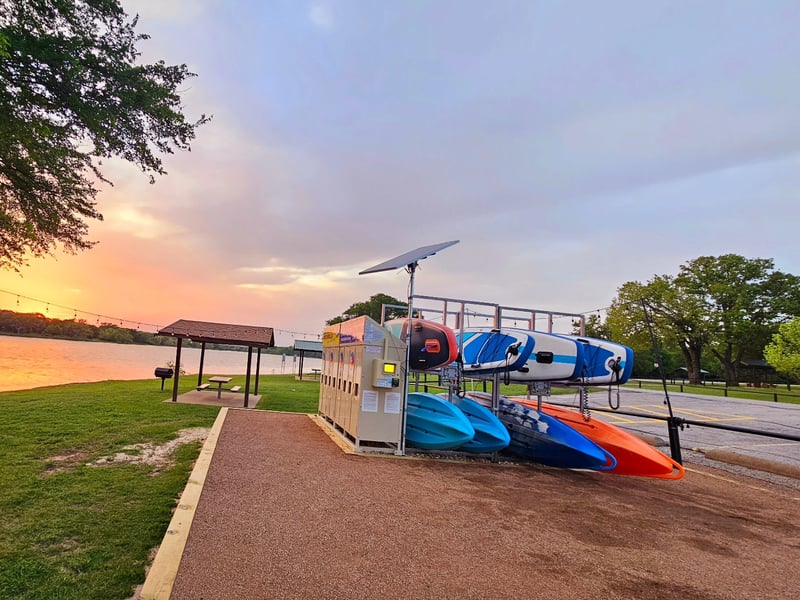 Enjoy Lake Lewisville with premium paddleboards and kayaks launched from Pilot Knoll Park. Pick up gear any day with a convenient self-service kiosk.
