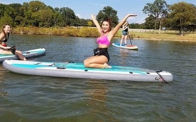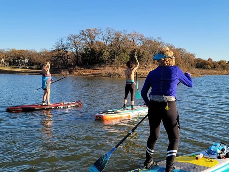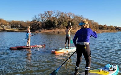 Juliet and her team have built something special here at this Lake Lewisville location. Reviewers consistently praise her as an exceptional instructor who makes paddleboarding accessible for complete beginners while still offering value to experienced paddlers. The beginner classes get particular attention, with multiple people mentioning how comfortable and confident they felt after just one lesson. Beyond the basics, there's also a unique SUP yoga experience with instructor Lucinda that includes floating meditation, which several guests found surprisingly relaxing. The setup is impressively convenient with a self-serve kiosk for rentals, and the location itself gets high marks for calm waters and scenic coves without heavy boat traffic. What stands out is how accommodating the staff is, meeting groups at 6 AM for sunrise paddles or helping customers choose between hardside and inflatable options. Juliet also leads international travel adventures, including catamaran trips to the Greek islands that reviewers describe as life-changing experiences with incredible food and community. The overall vibe is welcoming and supportive, with people genuinely excited to return and bring friends along.