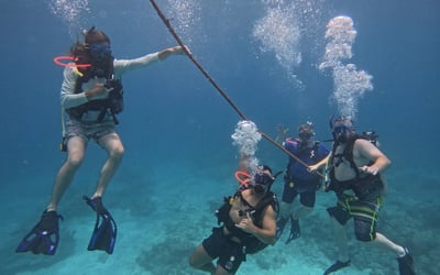 Ages 10+. You must be able to swim and complete a 200 meters swim and a 10 minute float, and complete the PADI medical which may require doctor approval. Wait 18 hours after diving before flying.