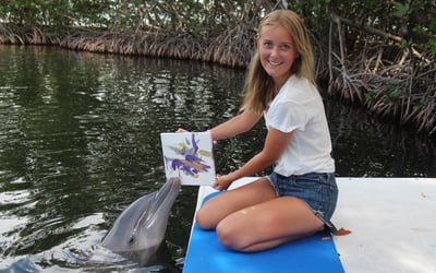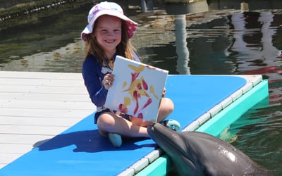 Assist a dolphin in crafting a marine masterpiece and witness their playful creativity up close.