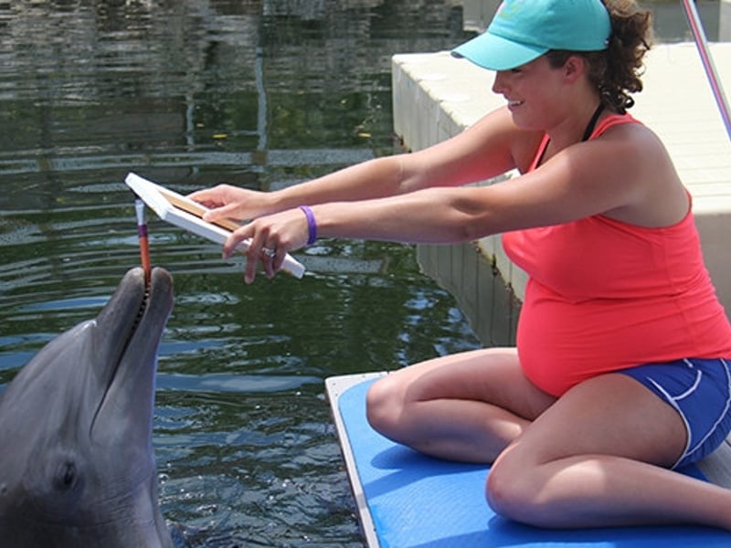 Dolphin painting, trainer guidance