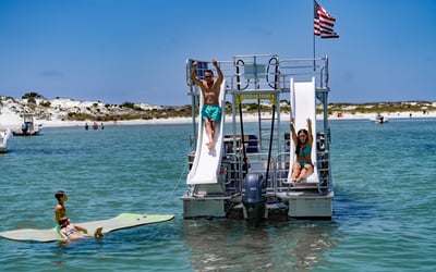 Explore Panama City Beach’s waterways aboard a spacious double-decker pontoon equipped with two waterslides and room for 14 guests. Cruise at your own pace to Shell Island or around St. Andrews Bay and enjoy a free floating lily pad for relaxing in the water.