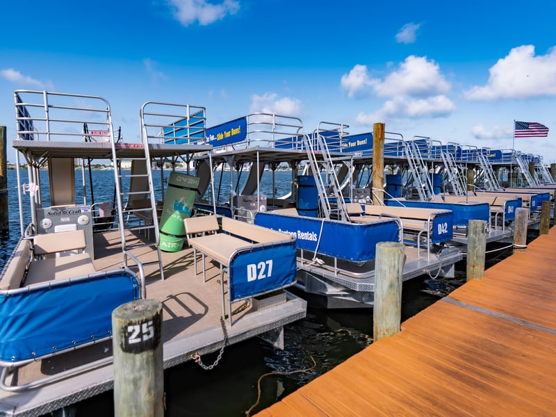 With an exceptional track record of nearly 1,000 reviews and stellar ratings, this pontoon rental operation clearly has the process down to a science. The online booking system gets consistent praise for being straightforward, with easy check-in that gets groups on the water quickly. Several reviewers specifically mention being able to accommodate larger parties (up to 14 people) when other companies max out at 12, and the boats come equipped with fun extras like double-decker options and slides that are especially popular with bachelorette parties and group celebrations. The staff earns glowing feedback across the board. Captain Jim, Captain Brian, Captain Niles, and Jared all get shout-outs for being personable, knowledgeable, and fun. Even first-time captains who opted to pilot themselves report feeling well-prepared thanks to thorough, patient instructions from the team. The location offers convenient access to Crab Island in about 10 minutes, and many groups spotted dolphins during their trips. From bachelor parties to family outings, people consistently mention planning return visits, which speaks volumes about the overall experience.