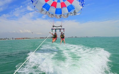 Soar up to 800 feet over the Gulf on a 10-minute flight during an easy 1.5-hour parasailing outing.