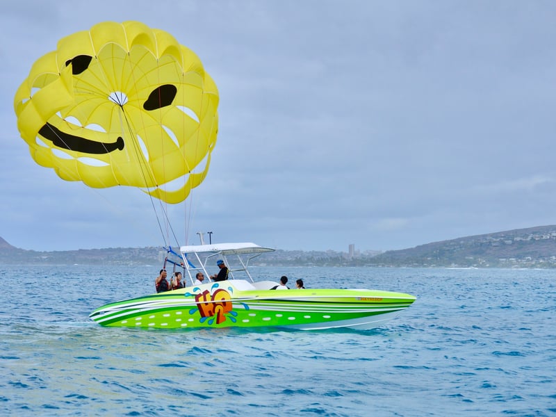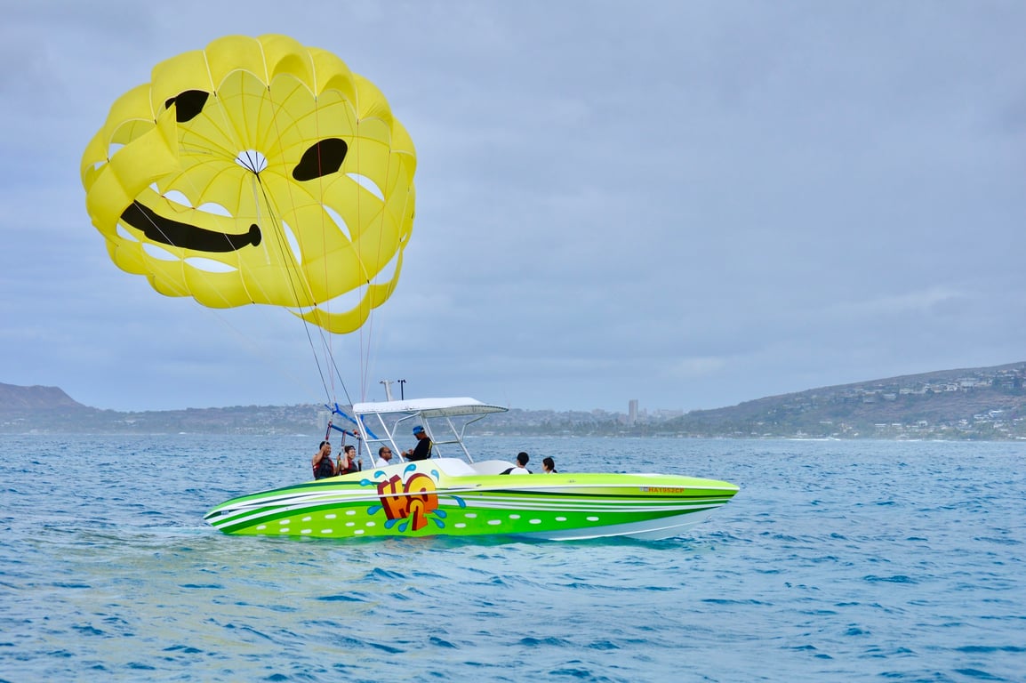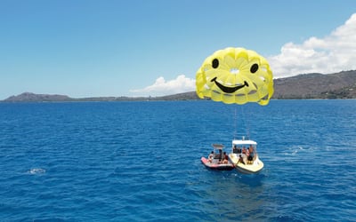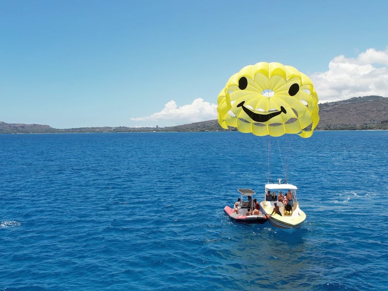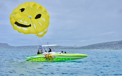 Lift off from a custom parasailing boat for a safe, family adventure over Maunalua Bay. Enjoy spectacular views of Oahu while you soar up to 600 or 800 feet.
