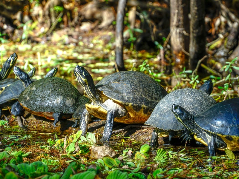 Alligators may be seen, especially in warmer months. They typically avoid people. Observe wildlife from a distance and never feed animals.