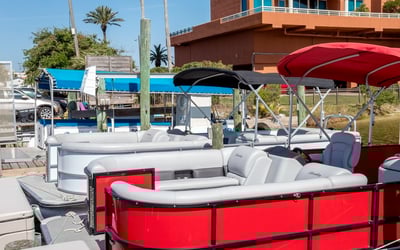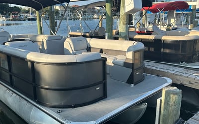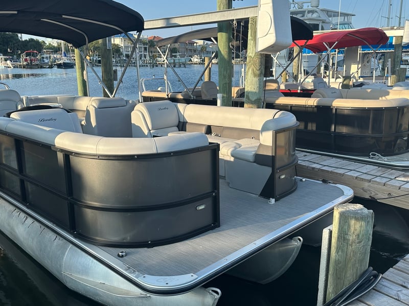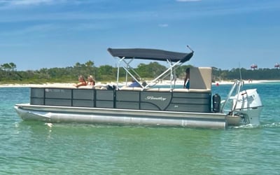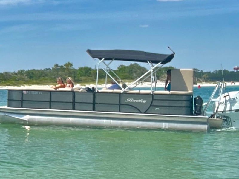Explore the Emerald Coast around Pensacola Beach with a multi-day tritoon pontoon rental. Enjoy a quiet 140HP engine, GPS, Bluetooth, Bimini shade, maps, and required safety gear.