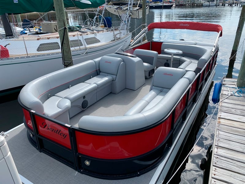 Cruise a pet-friendly tritoon with GPS, Bluetooth, and Bimini shade, ideal for families up to 10
