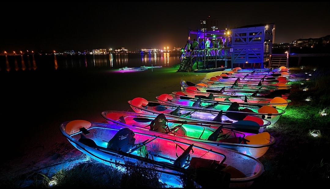 Bring 8+ for a glowing kayak outing with perks like picnic tables and glow sticks