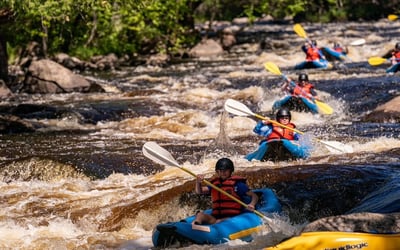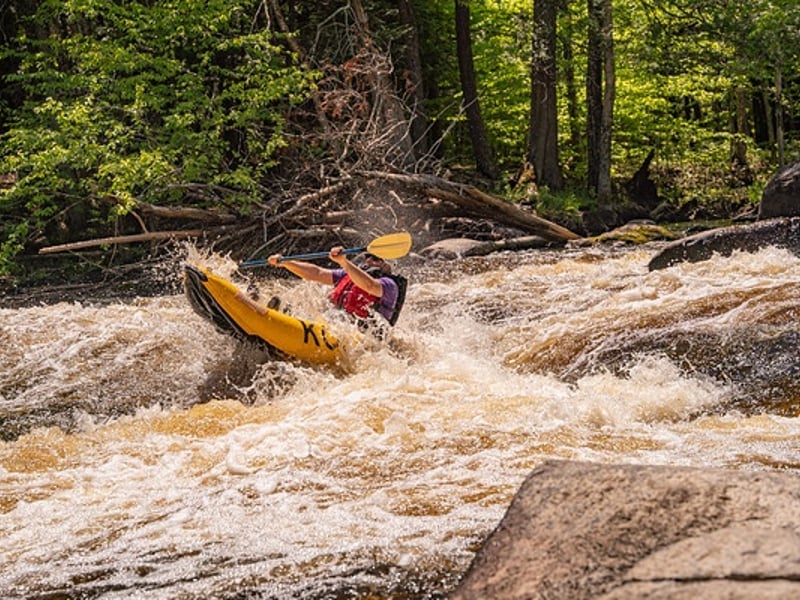Raft the Peshtigo River’s Class I–IV rapids in spring and summer. Water levels determine raft type, and essential gear is provided.