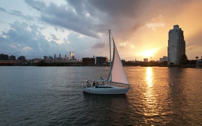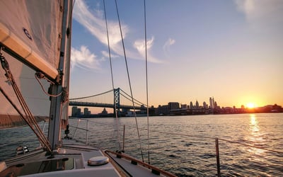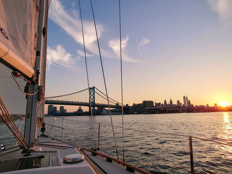 Enjoy golden-hour views of the Delaware River, bridges, and piers on a relaxed 1.5-hour sail