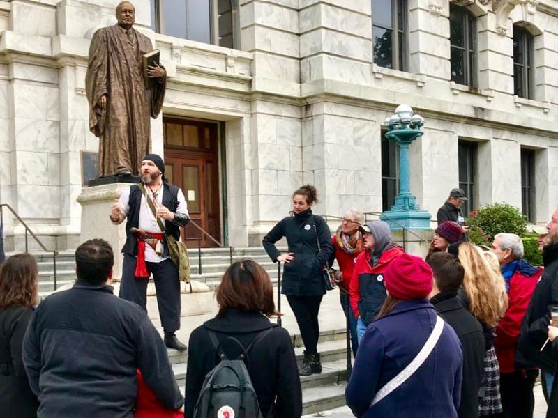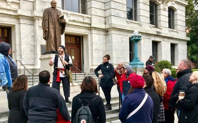 If you are 21 or older you may drink. If the group agrees, the tour may stop at a bar. Disruptive guests may be removed.