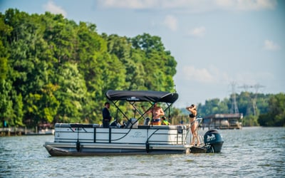 Rent a luxury pontoon from Riverside Marina and cruise Lake Wylie. Fuel is included and you'll get a boat walk-through and safety video.