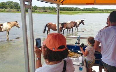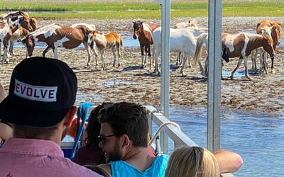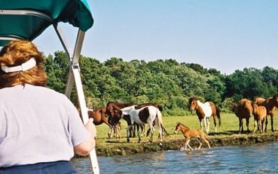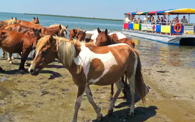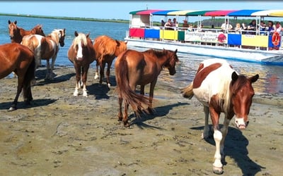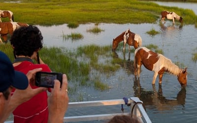Cruise calm waters to spot Assateague wild ponies, dolphins, and birds with a local captain