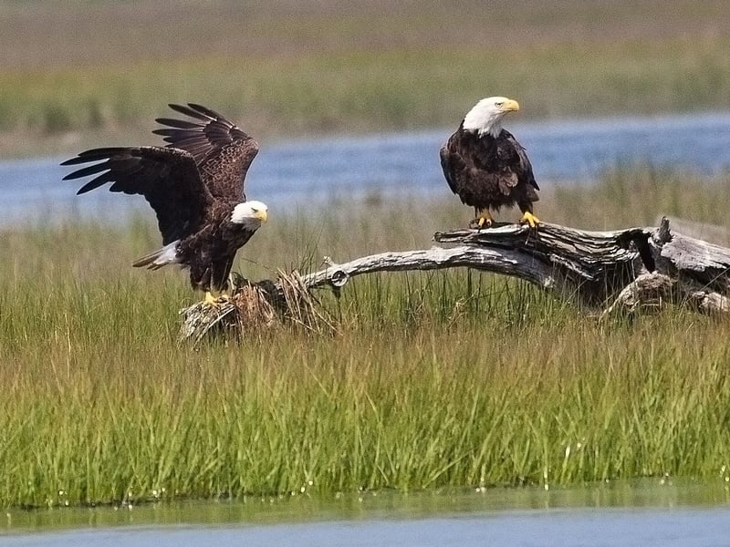 Anytime of day is great, wild horses graze and move around anytime of day. Shorebirds, eagles and dolphins are also seen at all times of the day. Mid April through mid October is awesome.