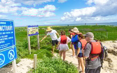 Popoi‘a Islet and the Mokulua Islets are part of Hawai‘i’s State Wildlife Sanctuary System and are managed by the Division of Forestry and Wildlife to protect native species and support ecosystem recovery. Visitors must follow all State Wildlife Sanctuary Rules, which include staying only in areas below the high-water mark and respecting all access restrictions. The sanctuaries prohibit fires, dogs, pets, camping, tents, tarps, or any type of structure at all times. By visiting, you and your group agree to comply with these regulations to help preserve the fragile wildlife and natural habitats found on these islets.