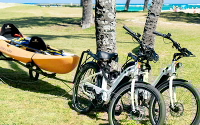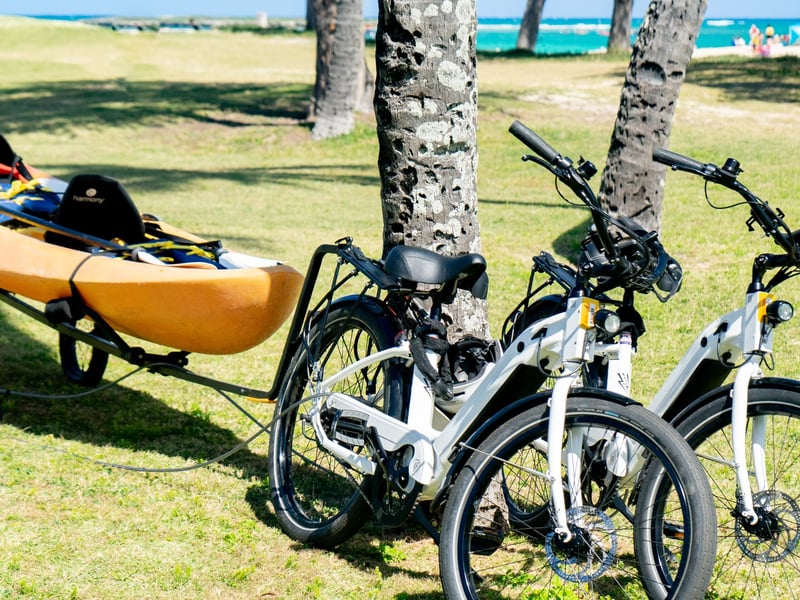 E-bike, kayak, snorkeling gear