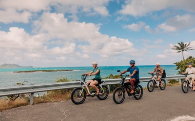 Ride an e-bike to Kailua Beach and follow a guide on a beginner-friendly paddle to Popoia (Flat) Island. Snorkel, spot sea turtles and monk seals, and enjoy snacks and water on a relaxed island outing.