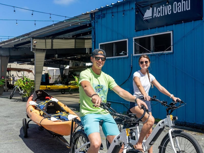 Spend a full day exploring Kailua by e-bike and kayak. Tow your kayak to the beach, paddle with a guide to Popoia Island, and snorkel in clear water.