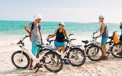 Must be 16+ to ride an e-bike and comfortable biking. Children under 13 require a private trip and must share a tandem kayak with an adult; kids 8 and under ride in a bike trailer. All paddlers should be physically fit and able to swim with a life vest.