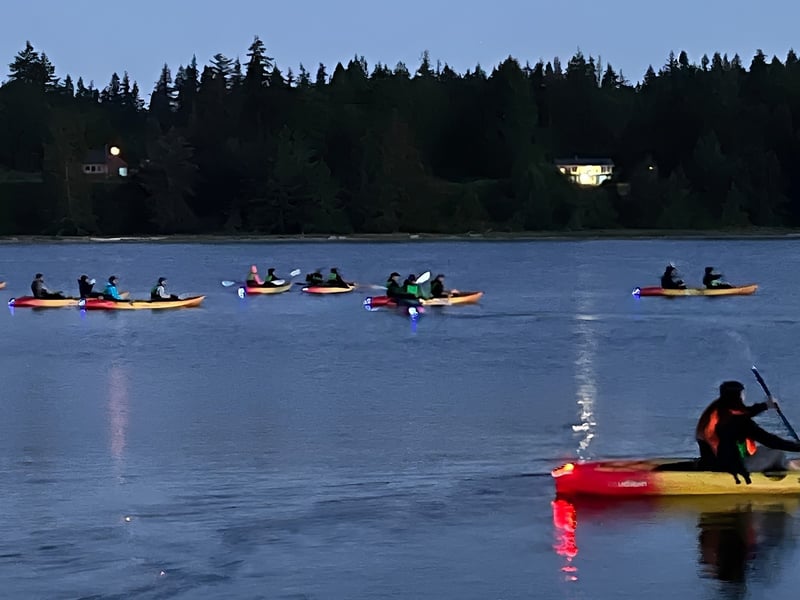 Witness glowing waters on a guided night paddle in Port Gamble Bay