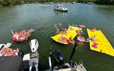 The crew here absolutely brings it. Captain Chaz gets the most shoutouts and it's clear why—he's got this perfect mix of being genuinely skilled on the water while keeping everyone laughing and comfortable. People specifically mention feeling safe with him, which matters when you're out there trying to have a good time. JJ and Brittany also earn enthusiastic praise for their energy and ability to make groups feel like they're hanging with friends rather than just hired help. This is a solid choice for group outings, especially bachelor/bachelorette parties and corporate events. The boats are clean and well-equipped, there are plenty of floats and activities to mess around with on the lake, and the whole setup seems built for fun. The overwhelmingly positive feedback suggests they've figured out how to consistently deliver those "best part of the trip" kind of days. A couple blank reviews don't reveal much, but the pattern is pretty clear—great vibes, beautiful scenery, and a crew that actually cares about showing you a memorable time on the water.