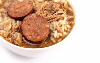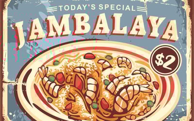 We visit five restaurants and shops. Expect Red Beans and Rice, a section of a Muffaletta, Seafood Gumbo, Creole Jambalaya, and a pecan praline. Items and restaurants may change.